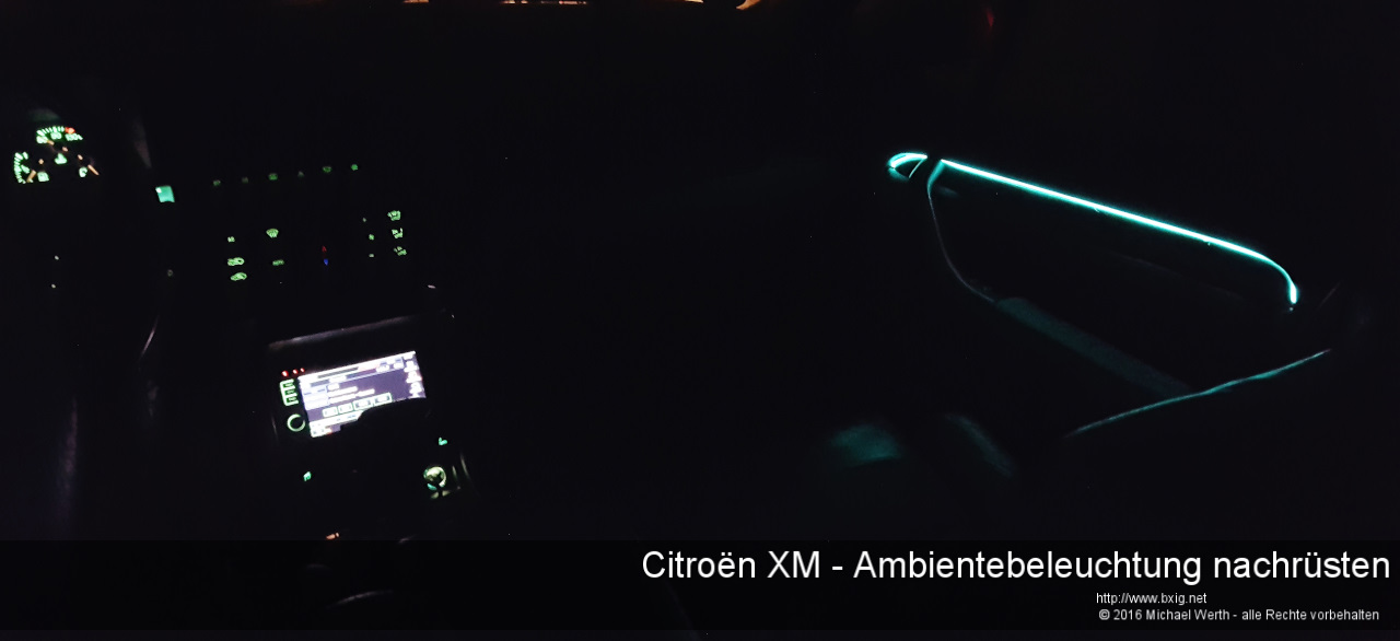 Mich hat es mal wieder in den Fingern gejuckt und ich habe an meinem XM eine Kleinigkeit nachgerüstet: Ambientebeleuchtung – natürlich in grün. 😉