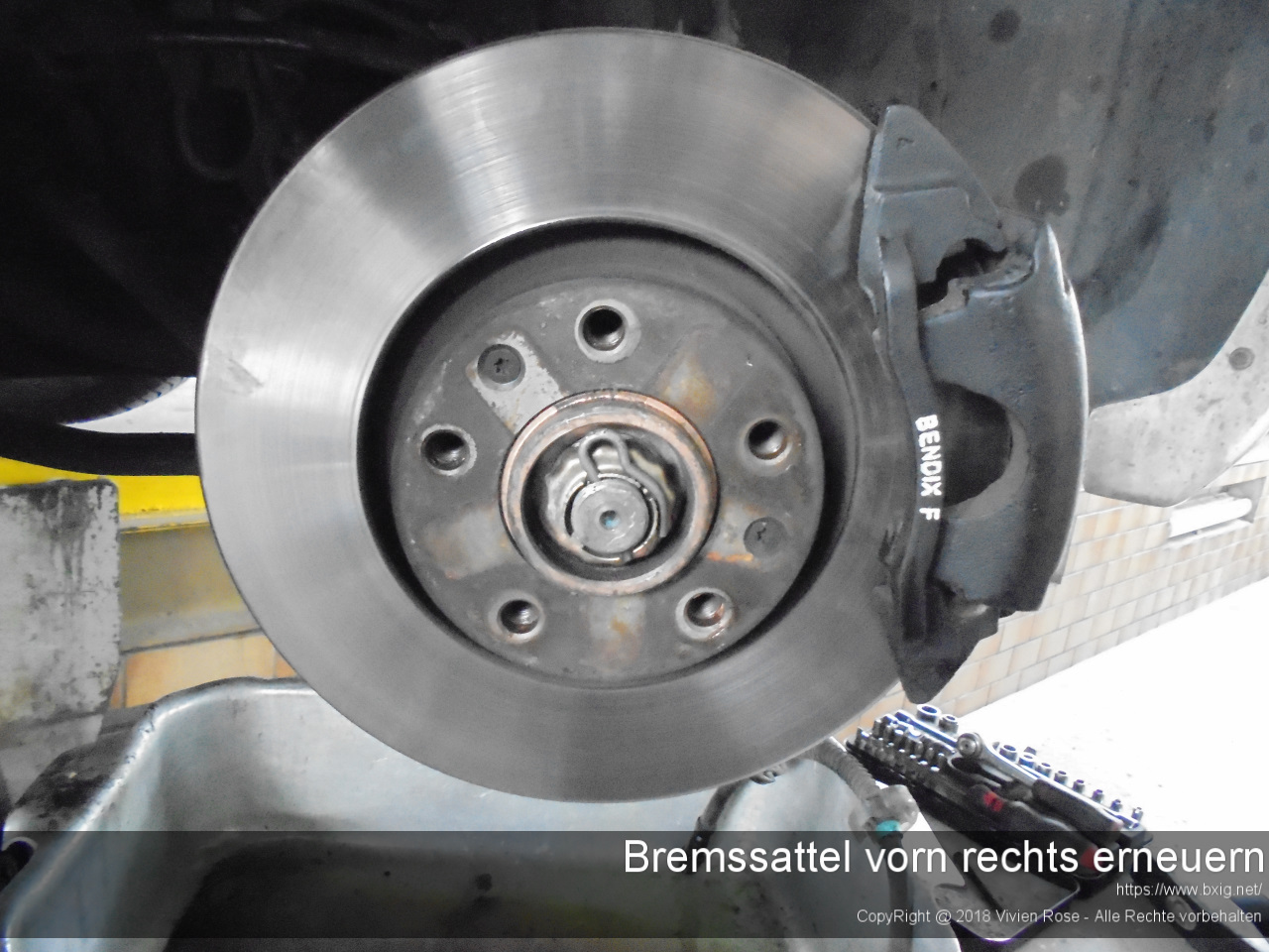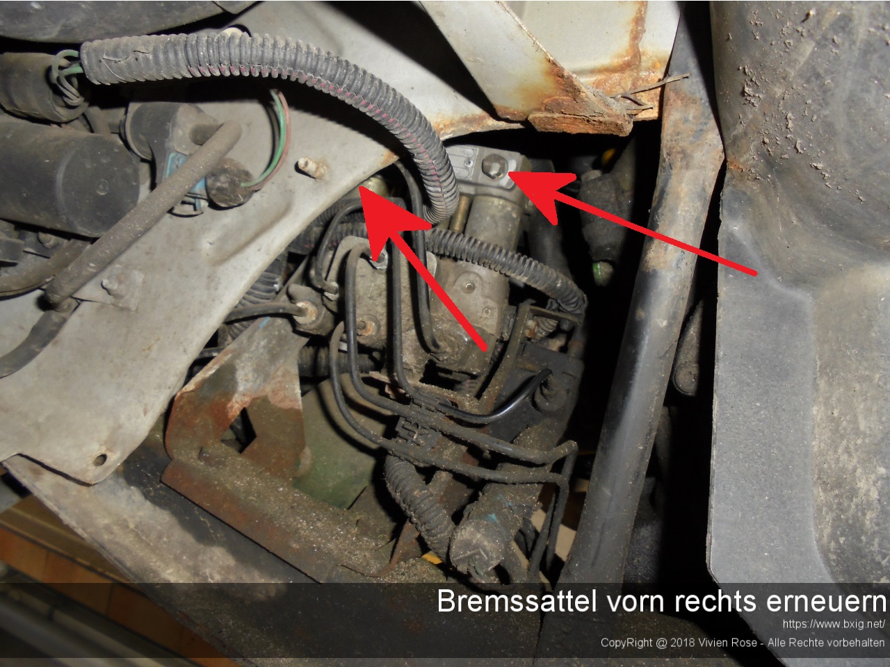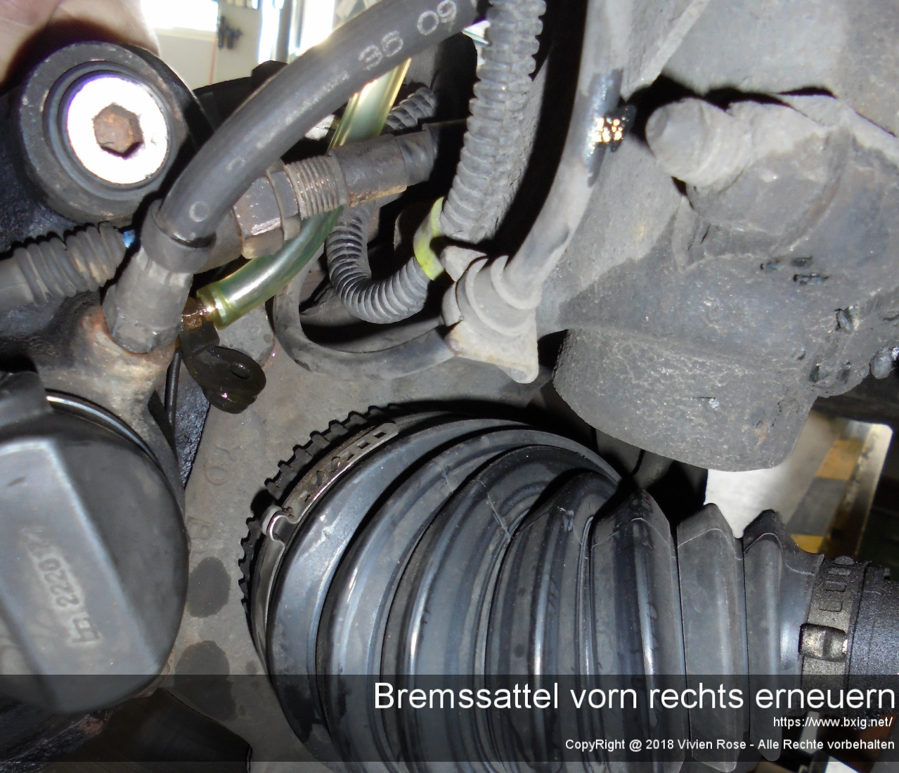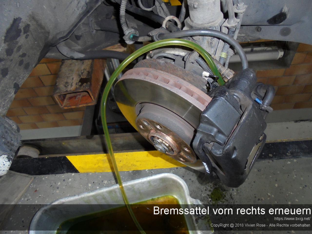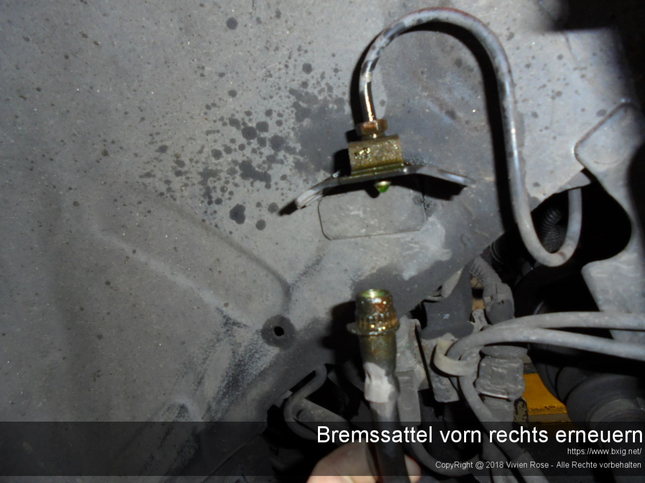 Bevor ich mit der eigentlichen Arbeit begann, sprühte ich ein paar Tage vorher etwas Rostlöserspray auf die zu demontierende Hydraulikverschraubung und aller Entlüfungsschrauben an den anderen Bremssätteln.