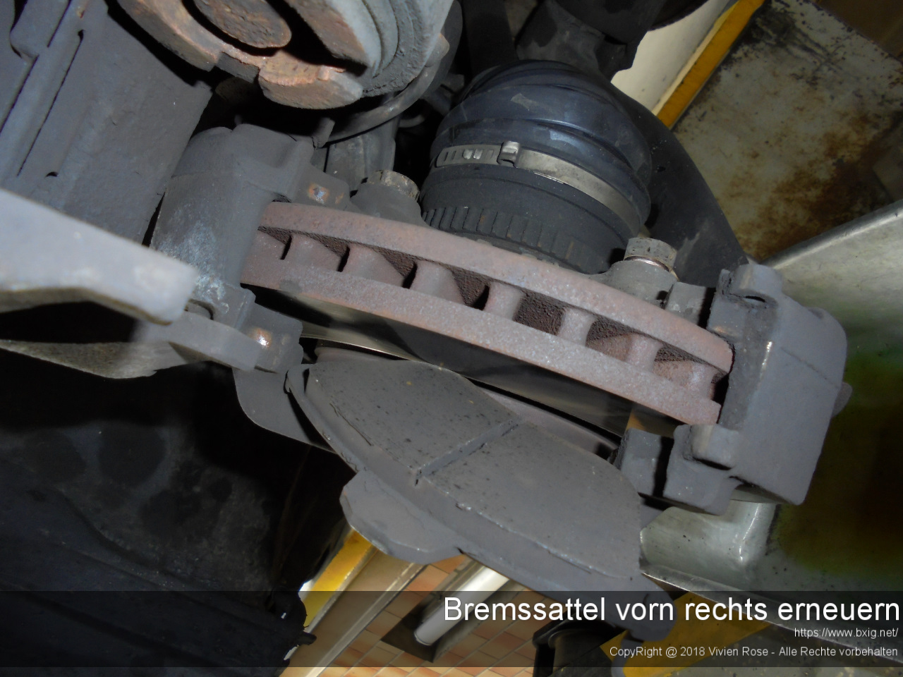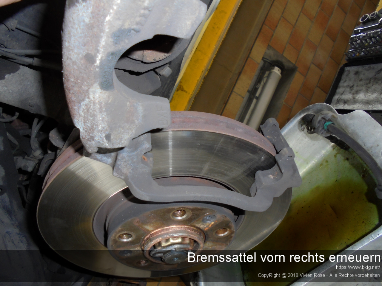 Als ich Anfang des Jahres die Bremsbeläge und Bremsscheiben erneuert hatte, fiel mir auf, dass die Manschette des Bremskolbens vom rechten Bremssattel eingerissen war.