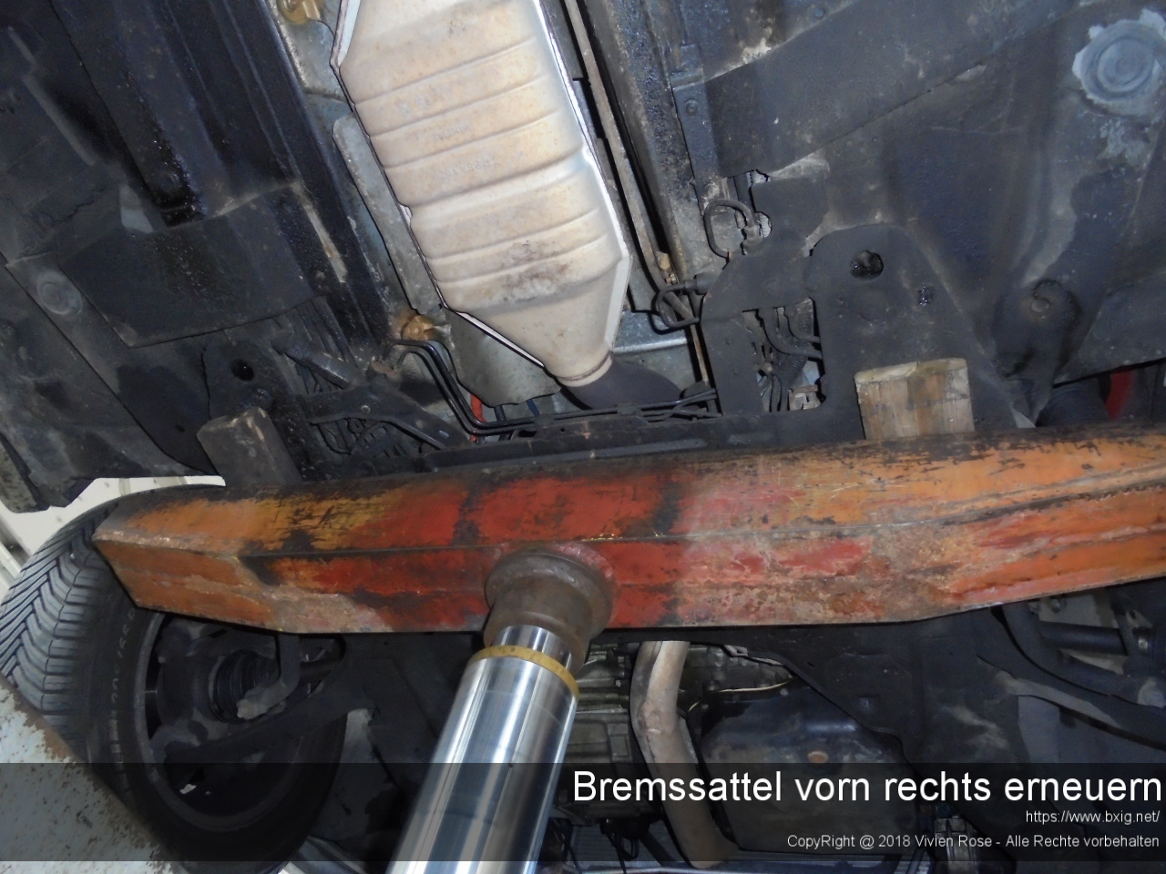 Ich hob das Fahrzeug an geeigneten Stellen laut Hersteller gleichmäßig hoch, um das Rad vorn rechts zu demontieren.