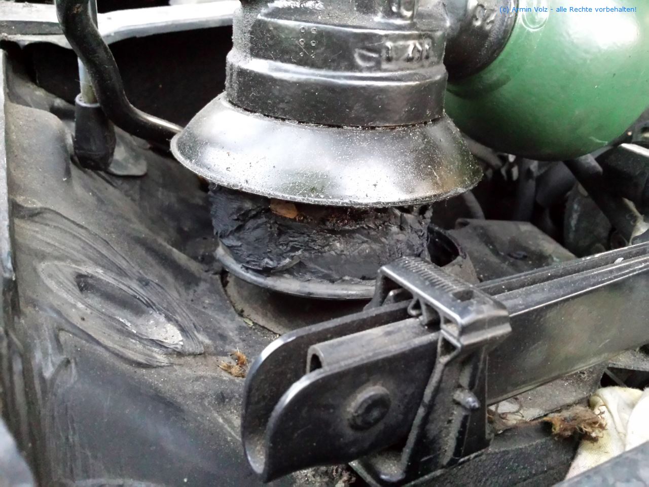 So sieht es aus, wenn das rechte Domlager eines Y4 Citroën XM kurz vor dem Durchschuss ist.